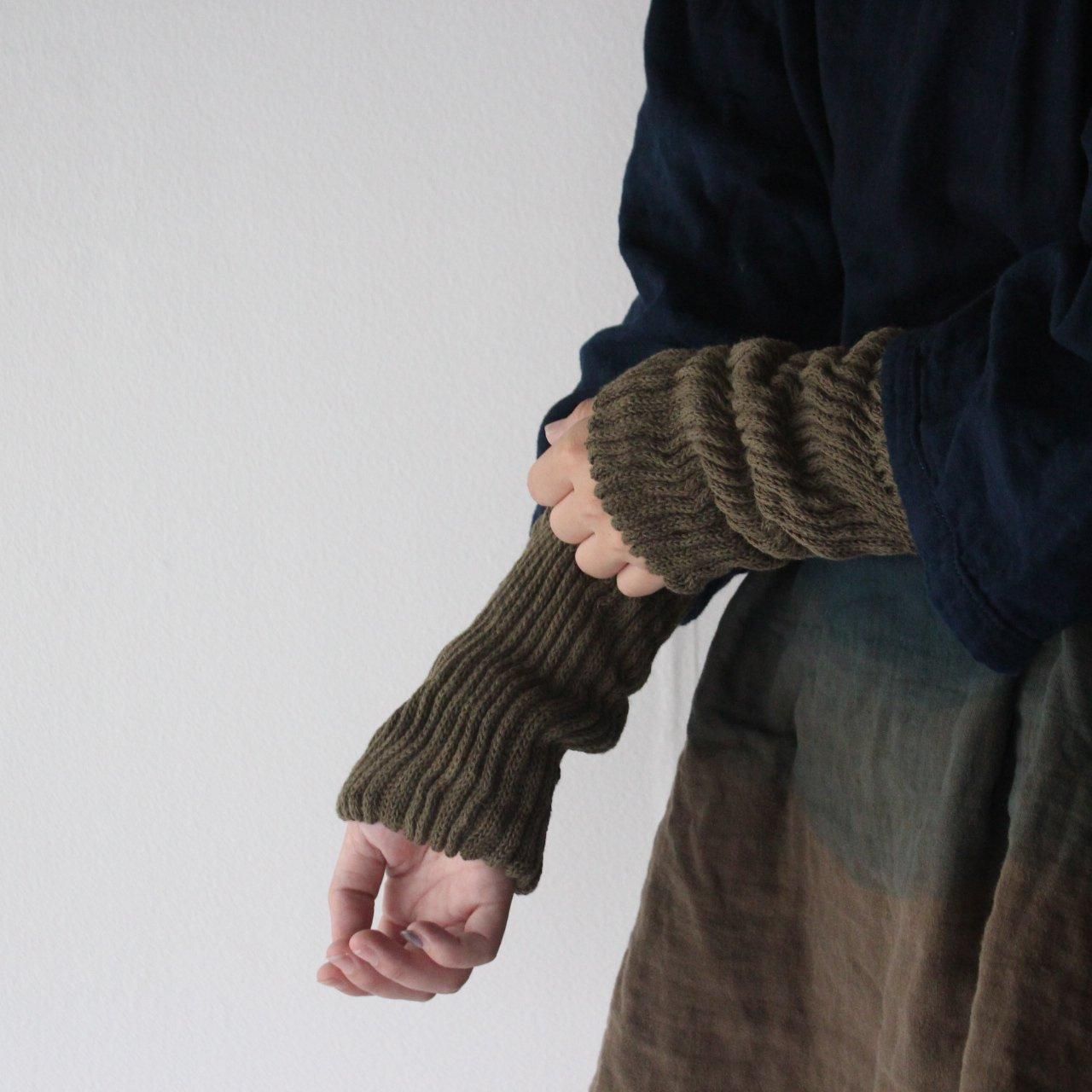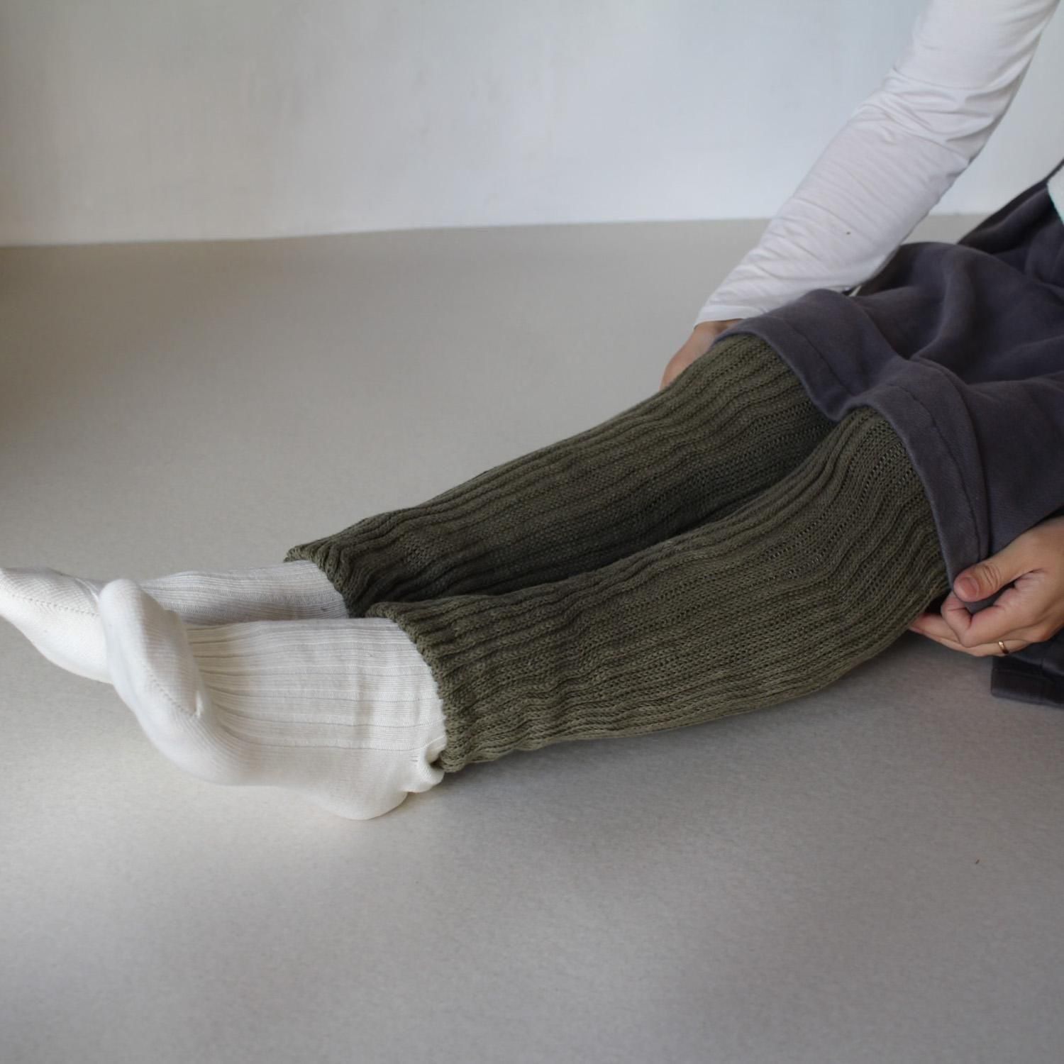 一般的な二重編みレッグウォーマーの編み機より、ひとまわり大きめの編み機で作っています。