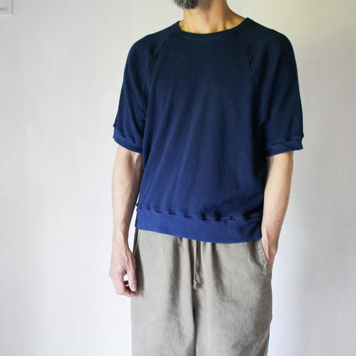 しっかりとした度詰めのワッフル生地を、天然藍で深みのある「群青色(ぐんじょういろ)」に染め上げました。
