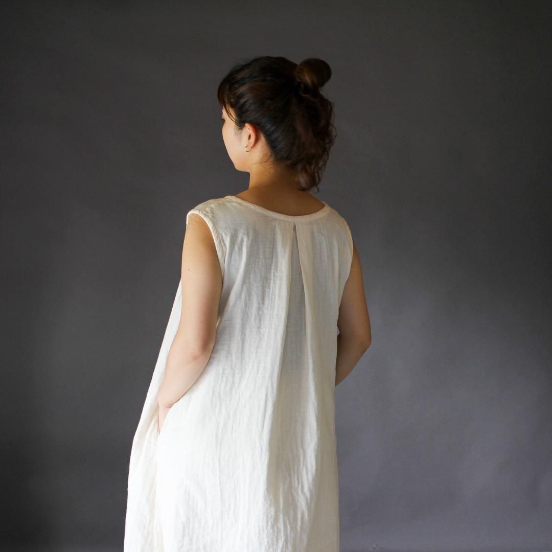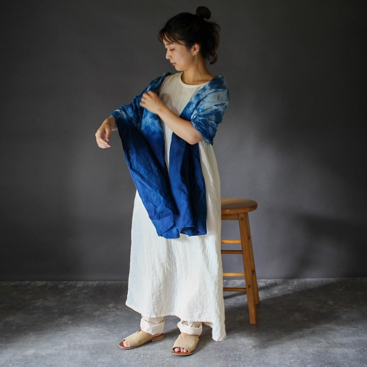 ダブルガーゼの豊かな風合いと、身体を泳がせるようなシルエットが魅力。
