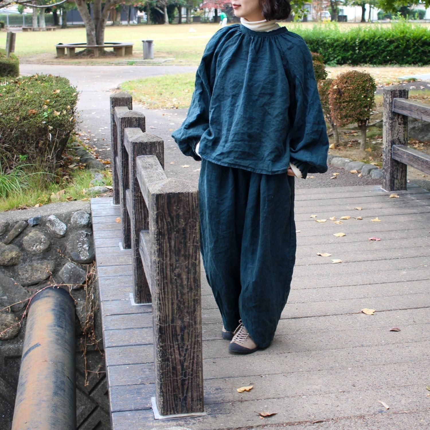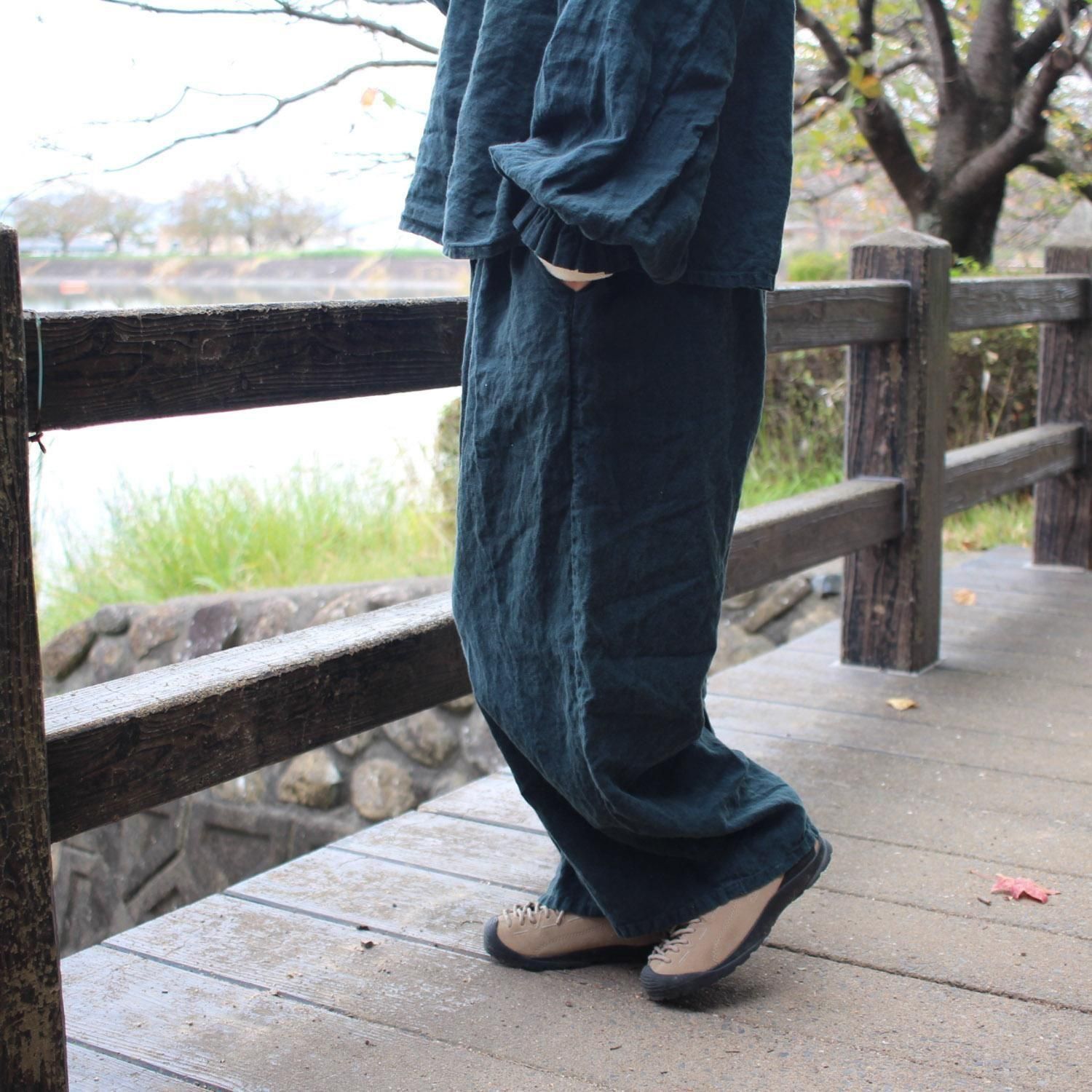 リネンならではの軽さで動きやすく、風が通る心地よさがあります。裾を一折するとまた違った表情が出て、シューズに合わせやすいです。深みのある憲法黒は、落ち着いた雰囲気で幅広いコーディネートに馴染みます。