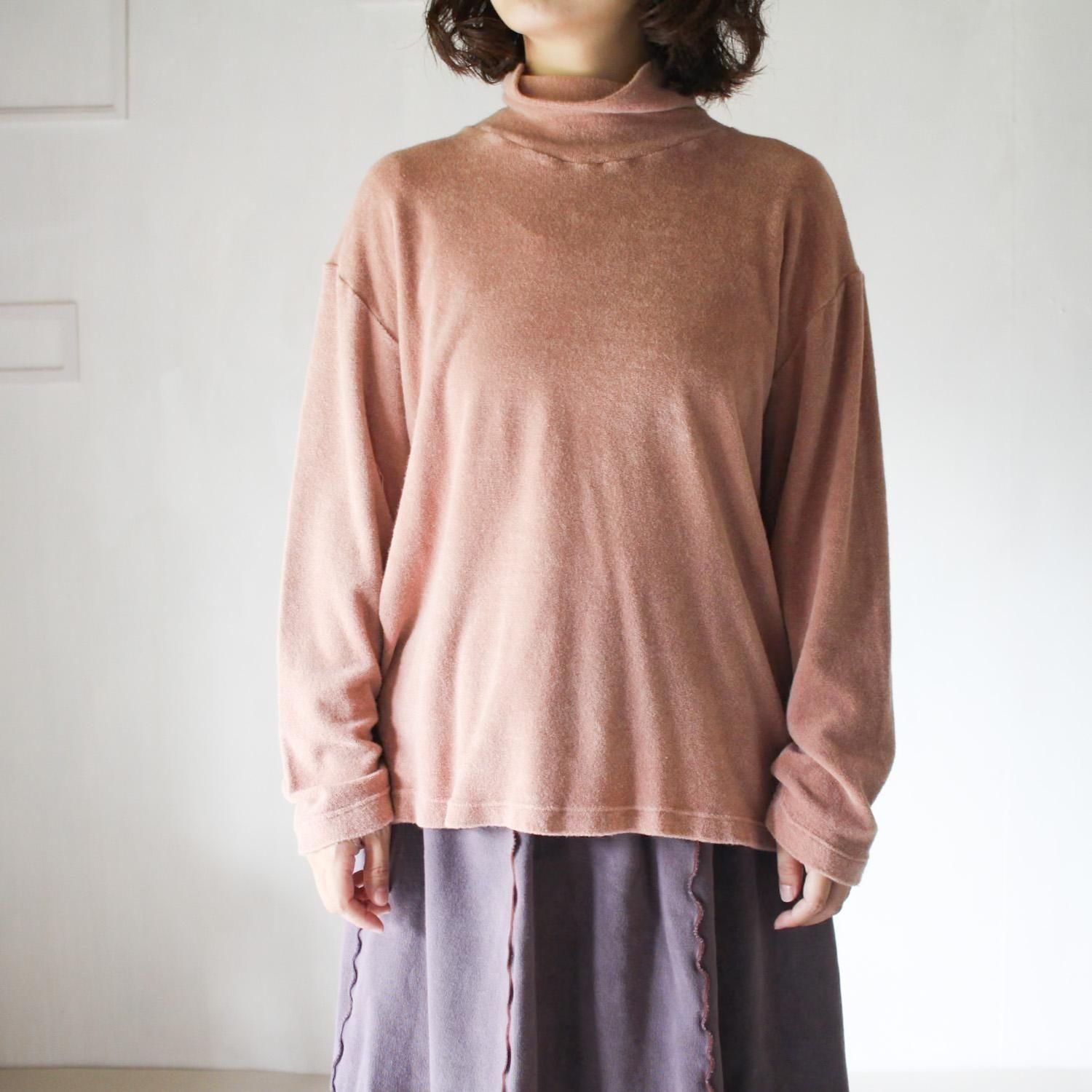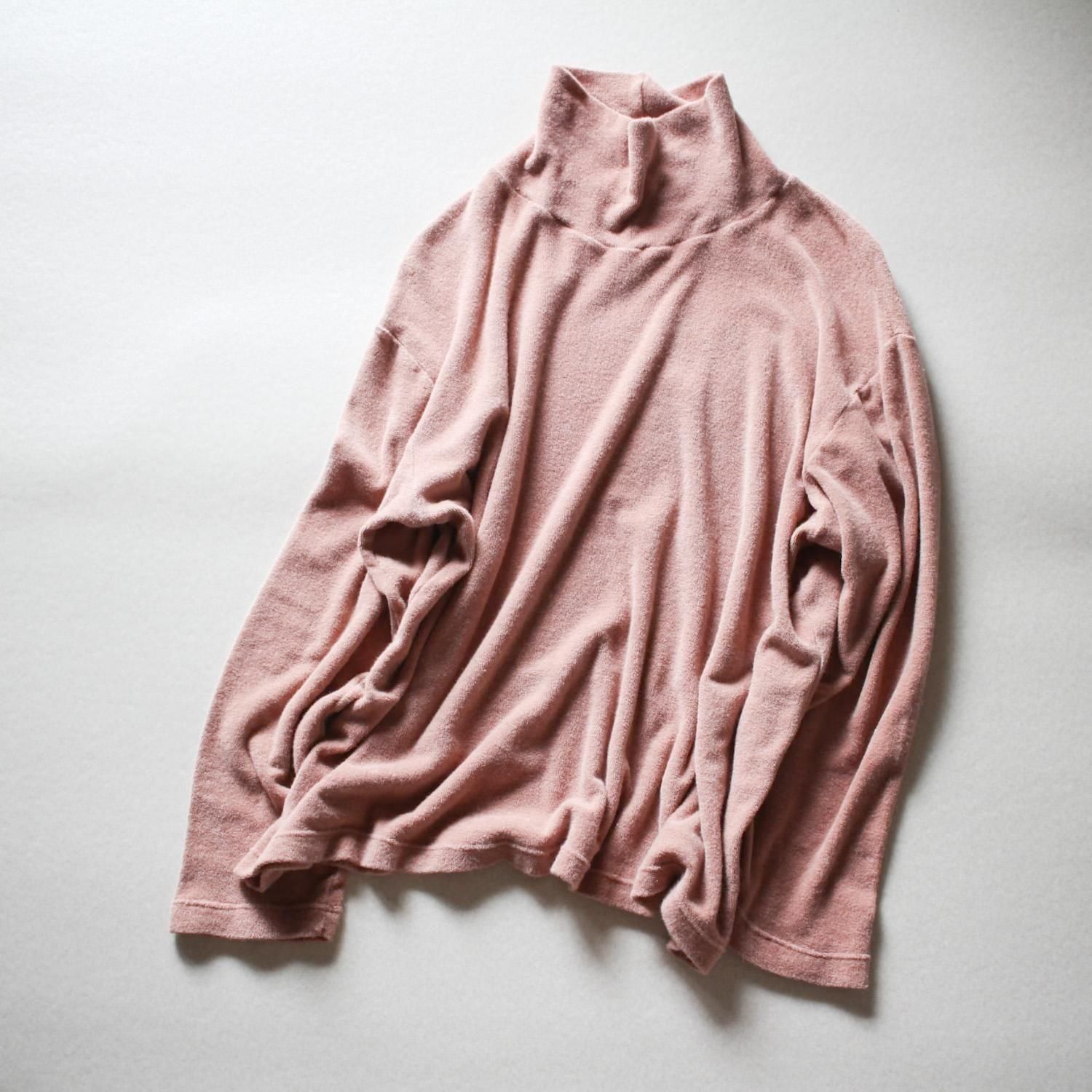 やわらかく、空気を含んだような肌ざわり。オーガニックコットンのパイルニットで仕立てたタートルネックです。