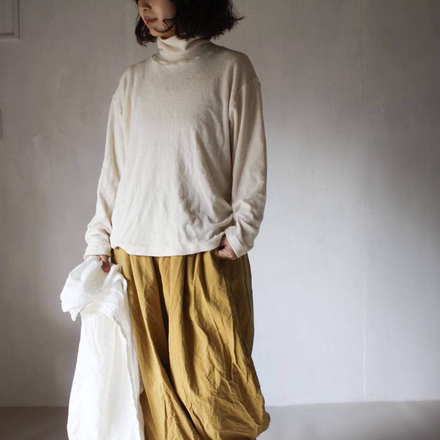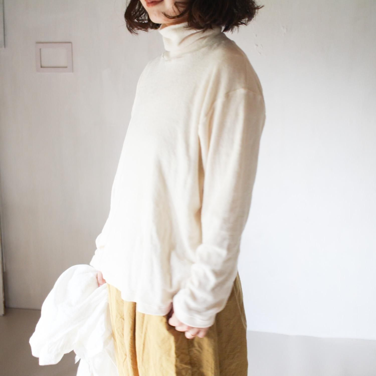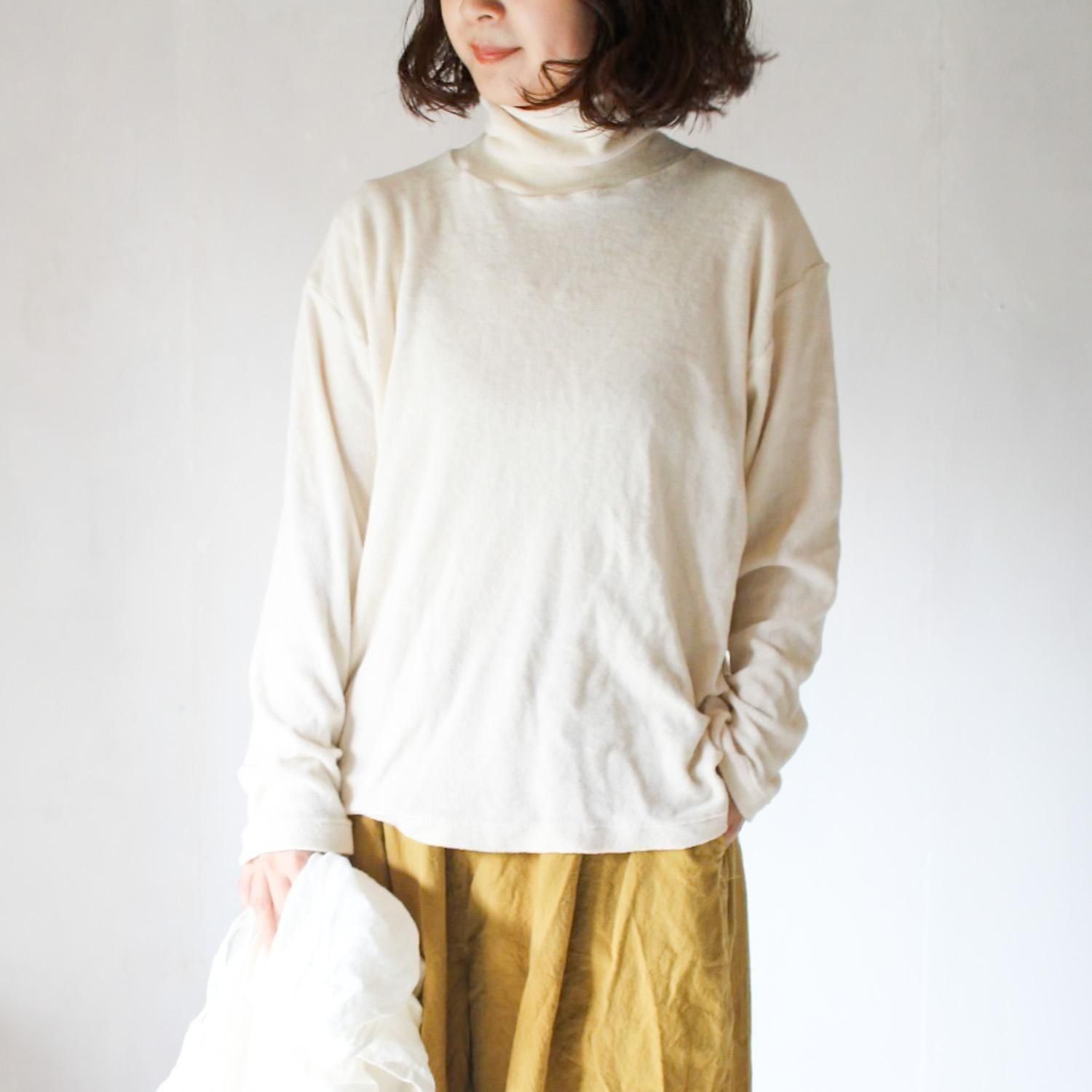 ふんわりと空気を含むような、やさしい着心地のタートルトップス。