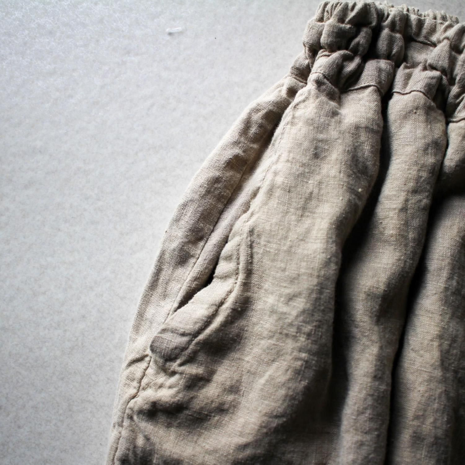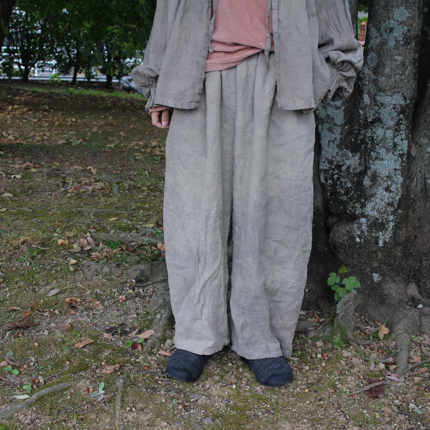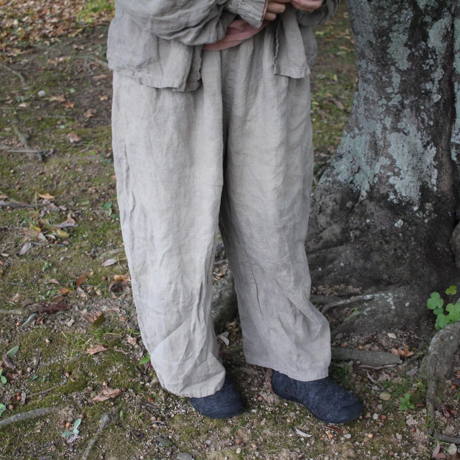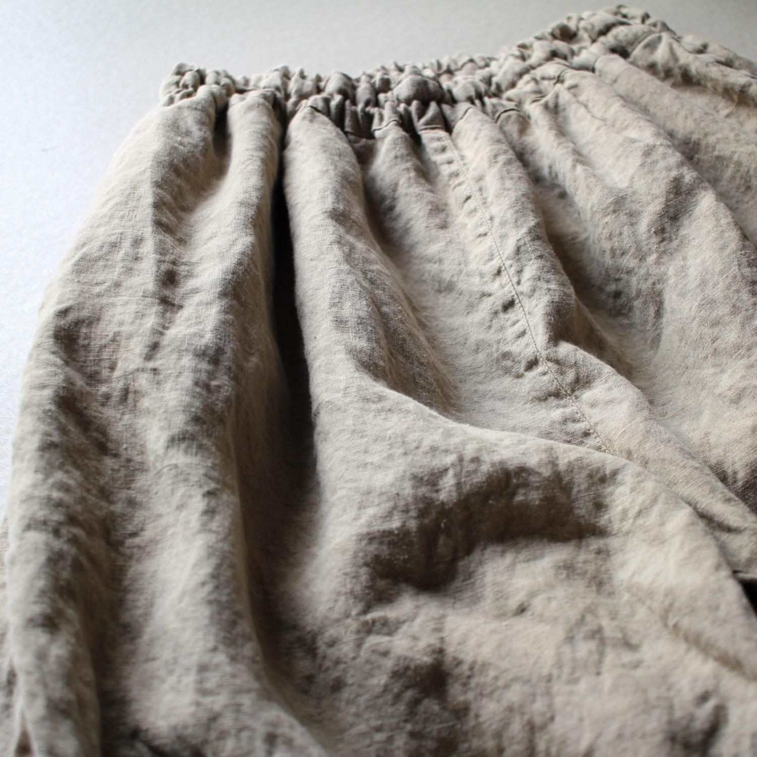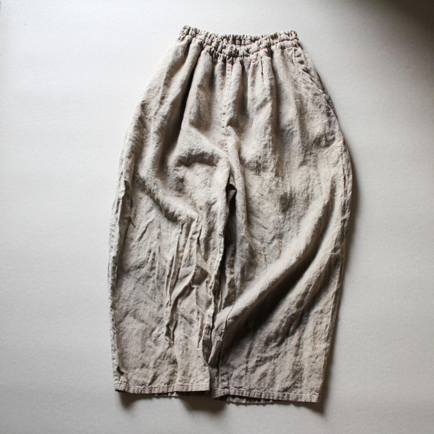 裾にかけてゆるやかにテーパードする、軽やかなリネンのワイドパンツ。