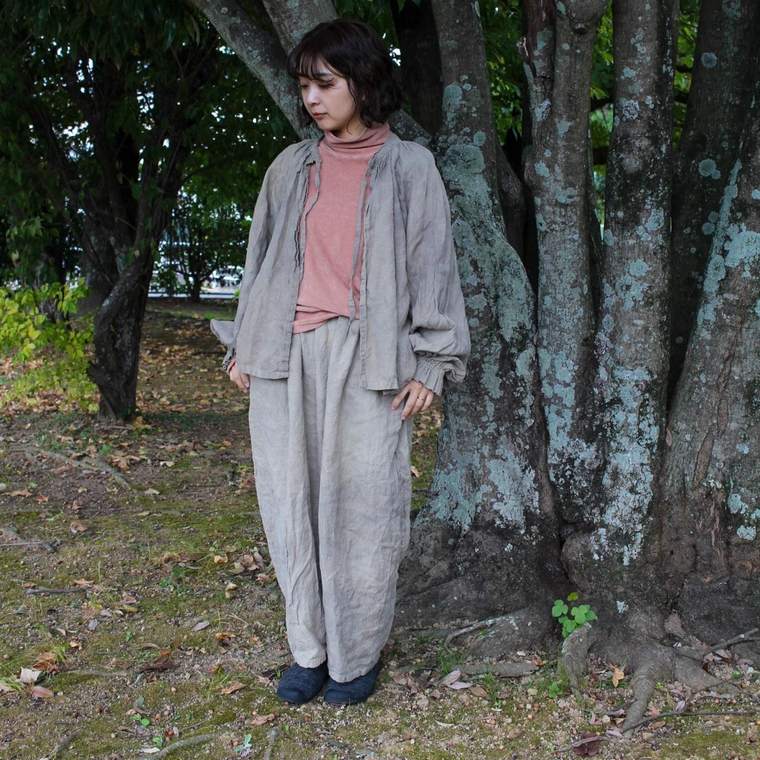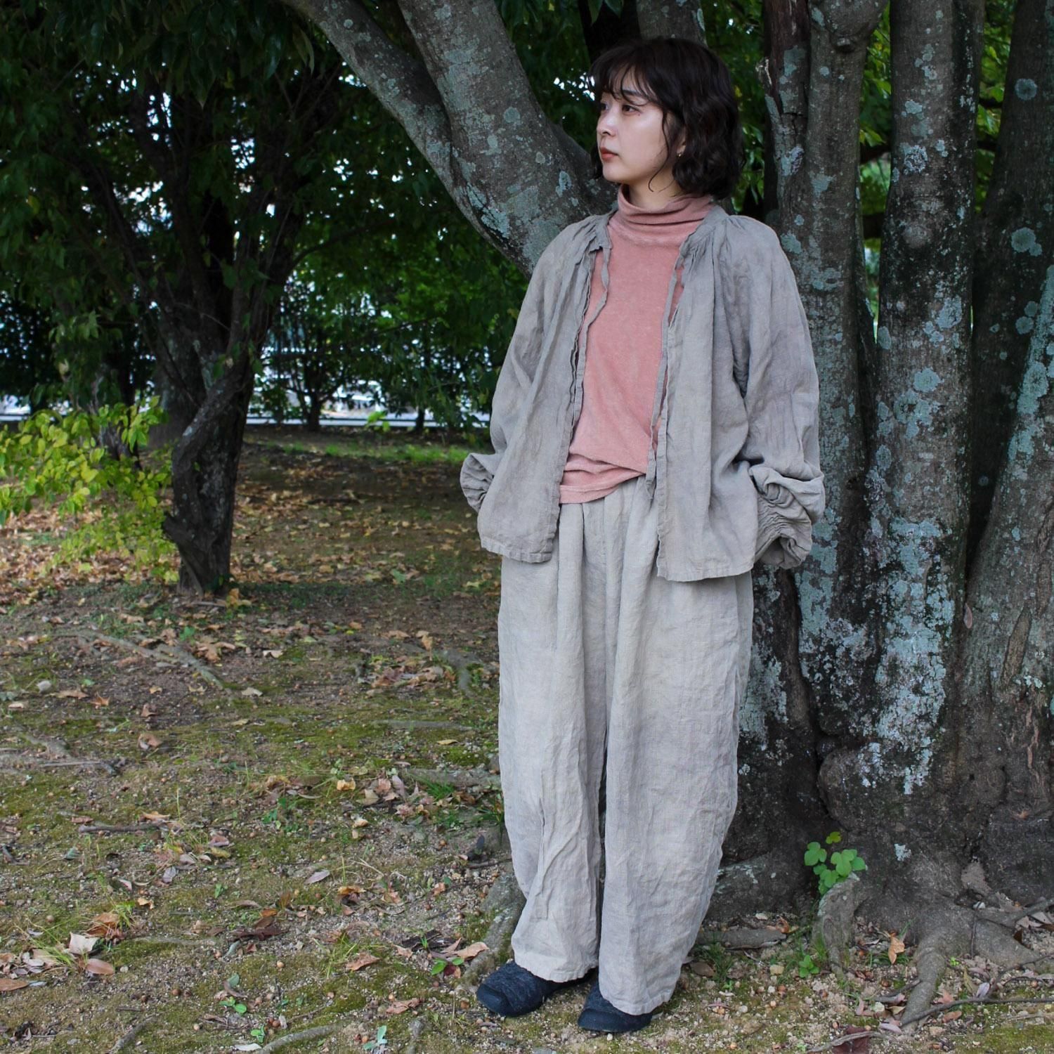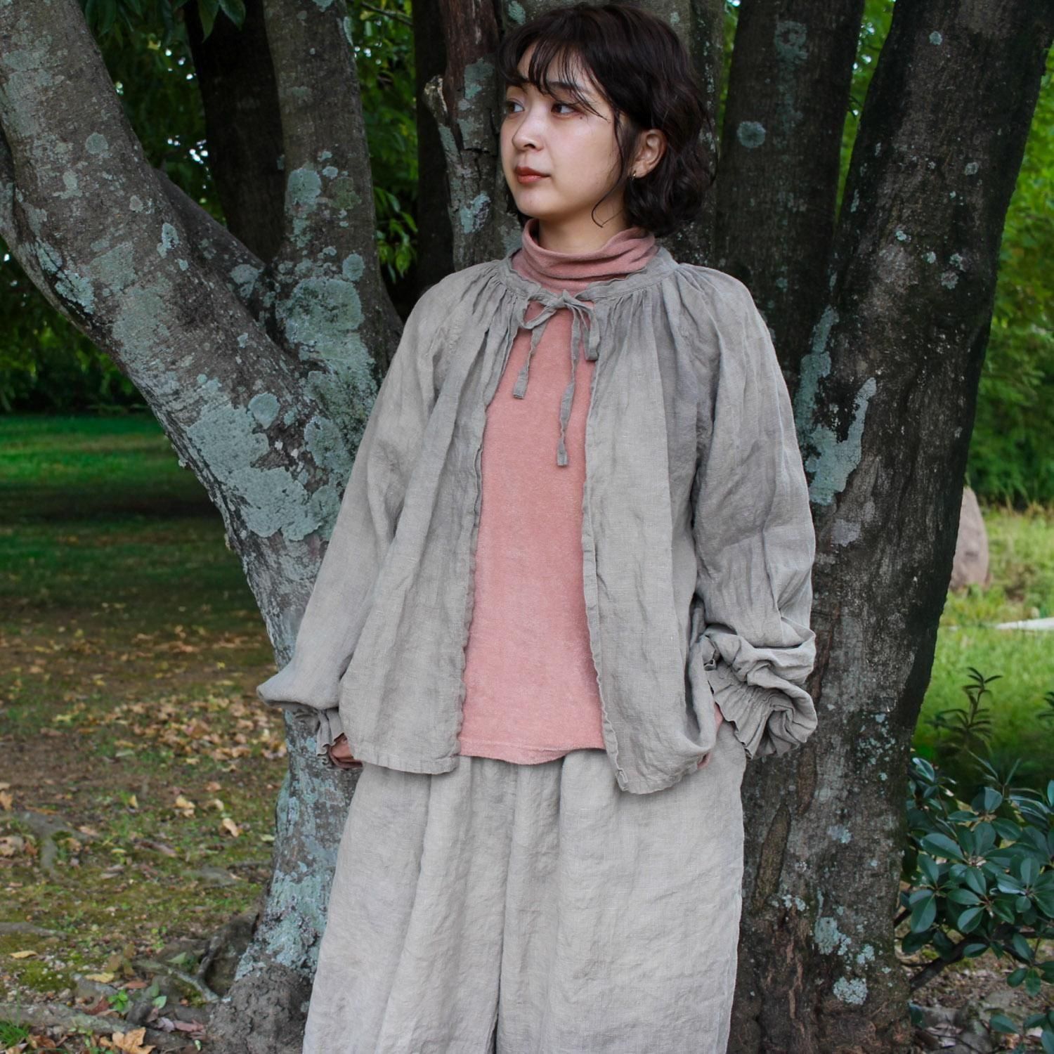 生地はリネン100%。さらりとした風合いとしなやかな落ち感を持ち、着るたびに肌に馴染んでいきます。
