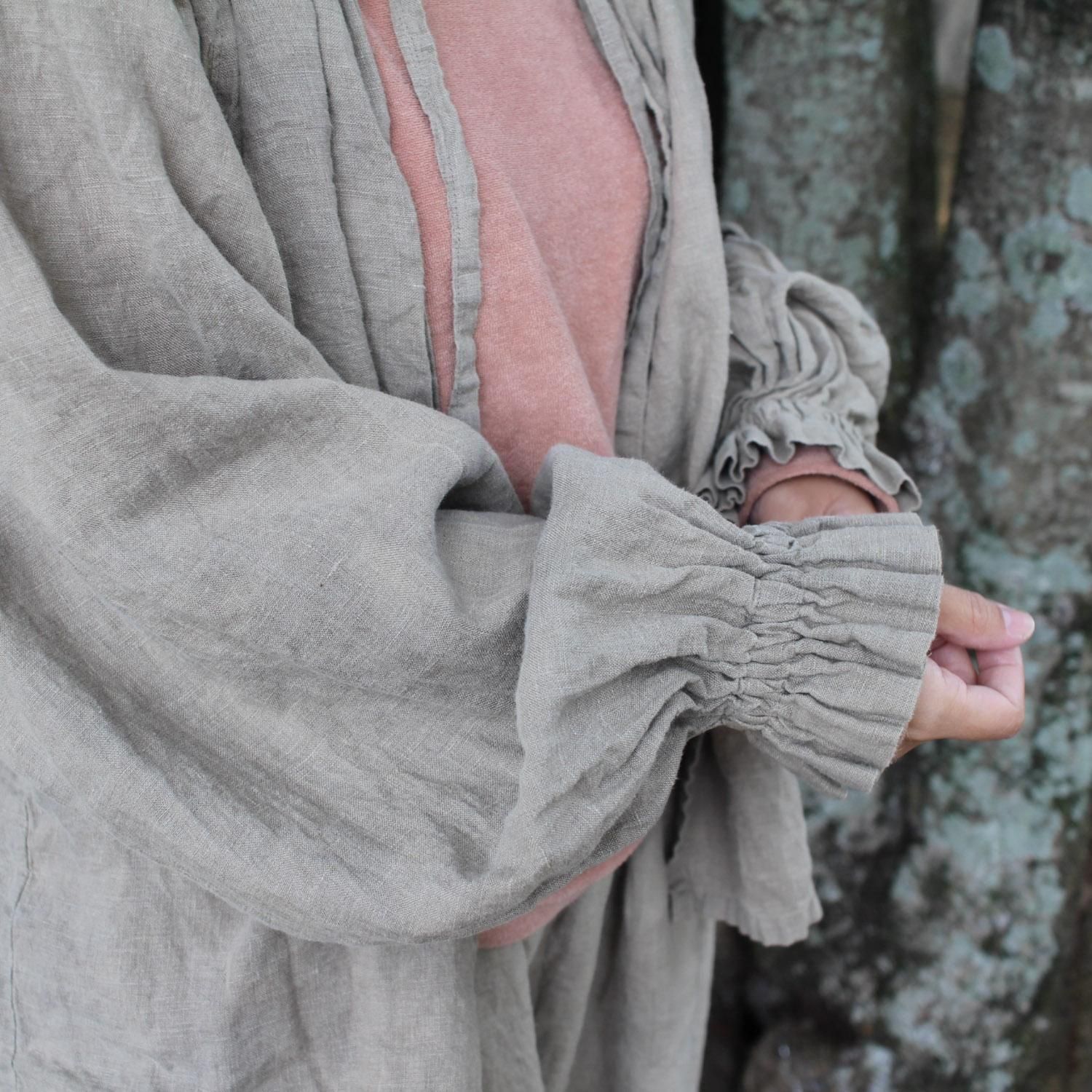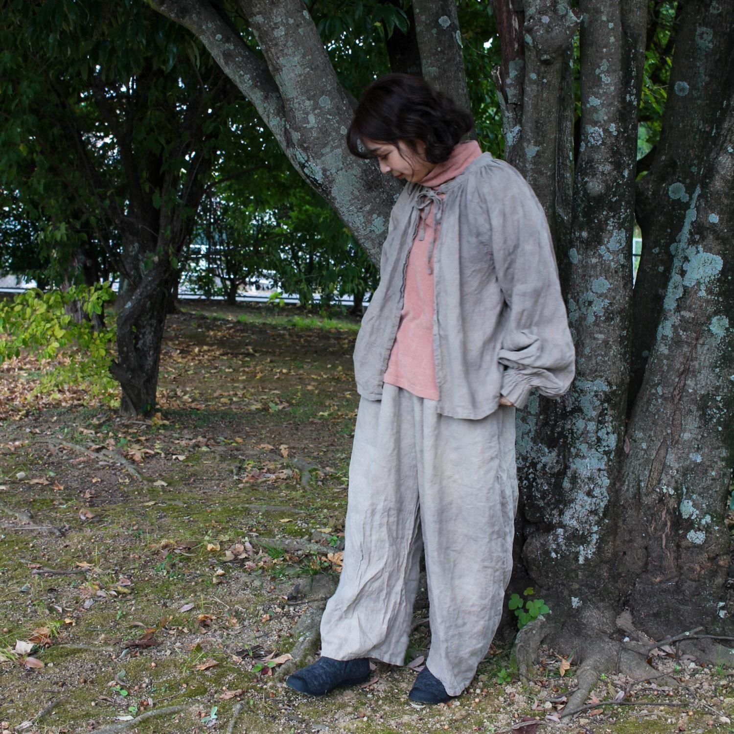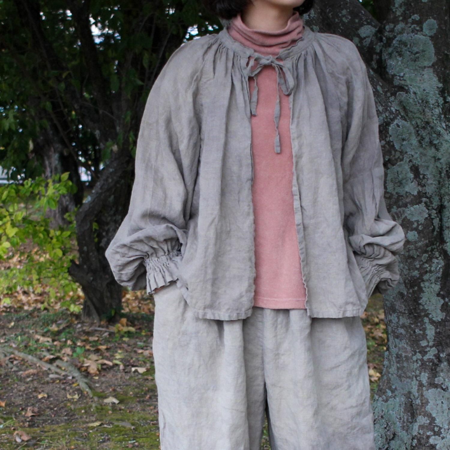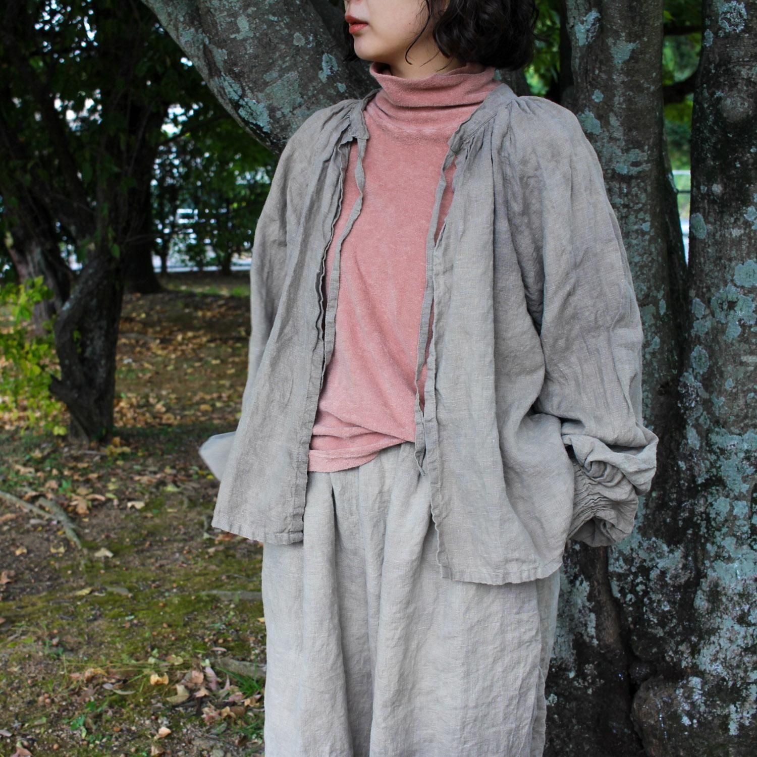 生地はリネン100%。さらりとした風合いとしなやかな落ち感を持ち、着るたびに肌に馴染んでいきます。
