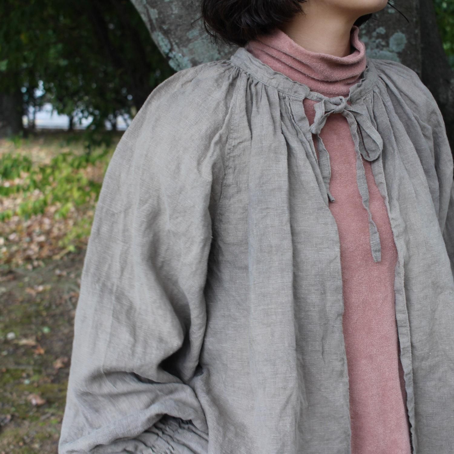 たっぷりとゆとりを持たせた身幅と、空気をはらむように広がる袖が印象的。シンプルでありながらも存在感があり、軽やかにまとえる一着です。