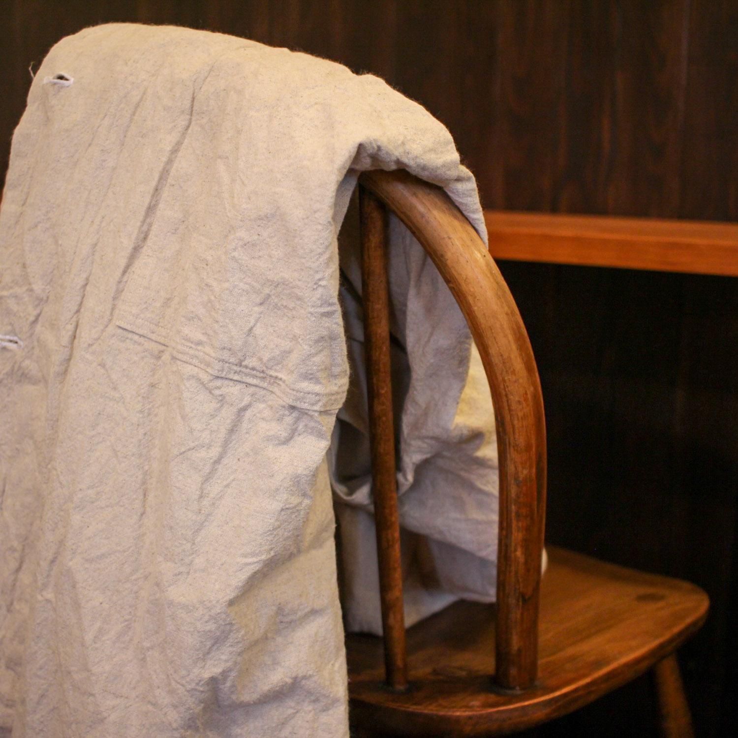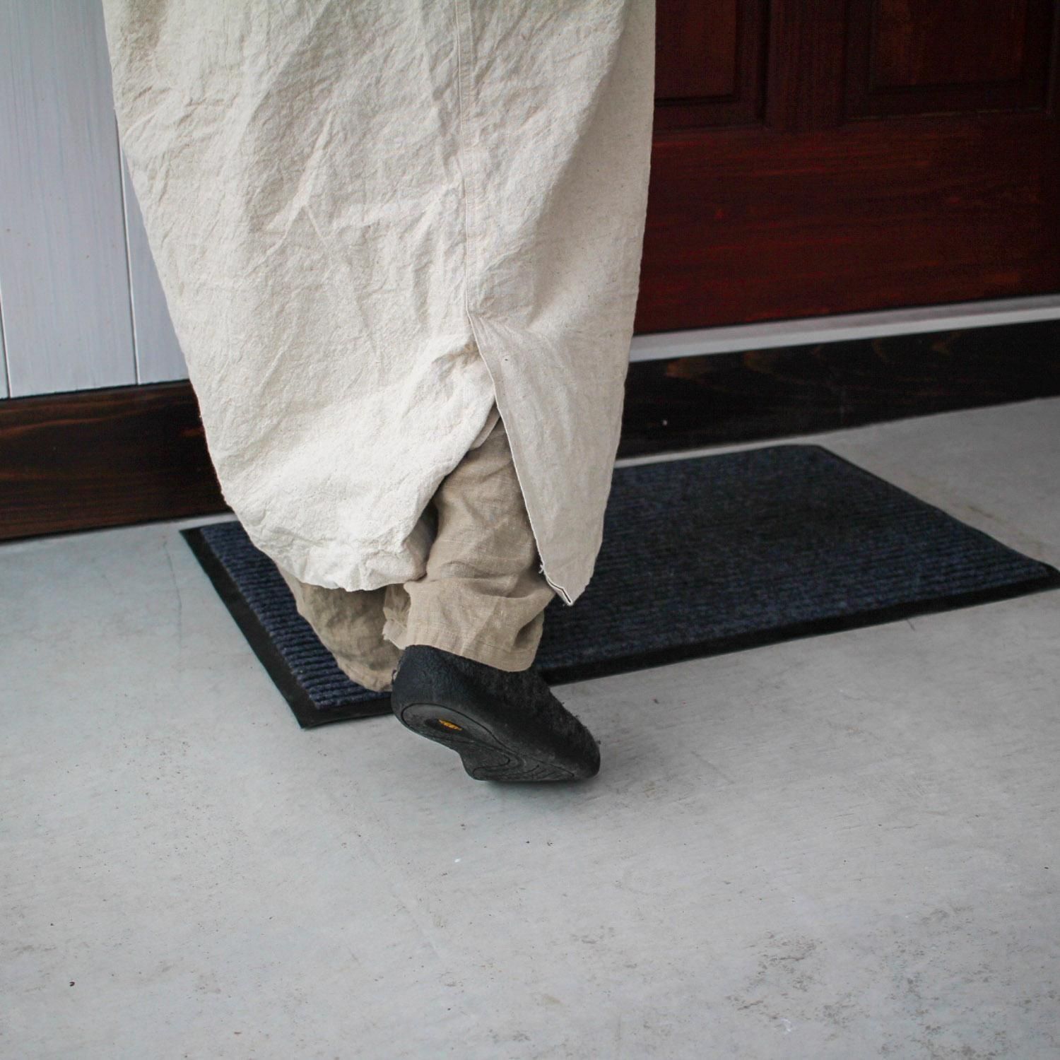 綿麻キャンバスならではの素朴な風合いを活かし、じっくりと時間をかけて湯通しすることで、ふっくらとした柔らかさと落ち感を引き出しています。