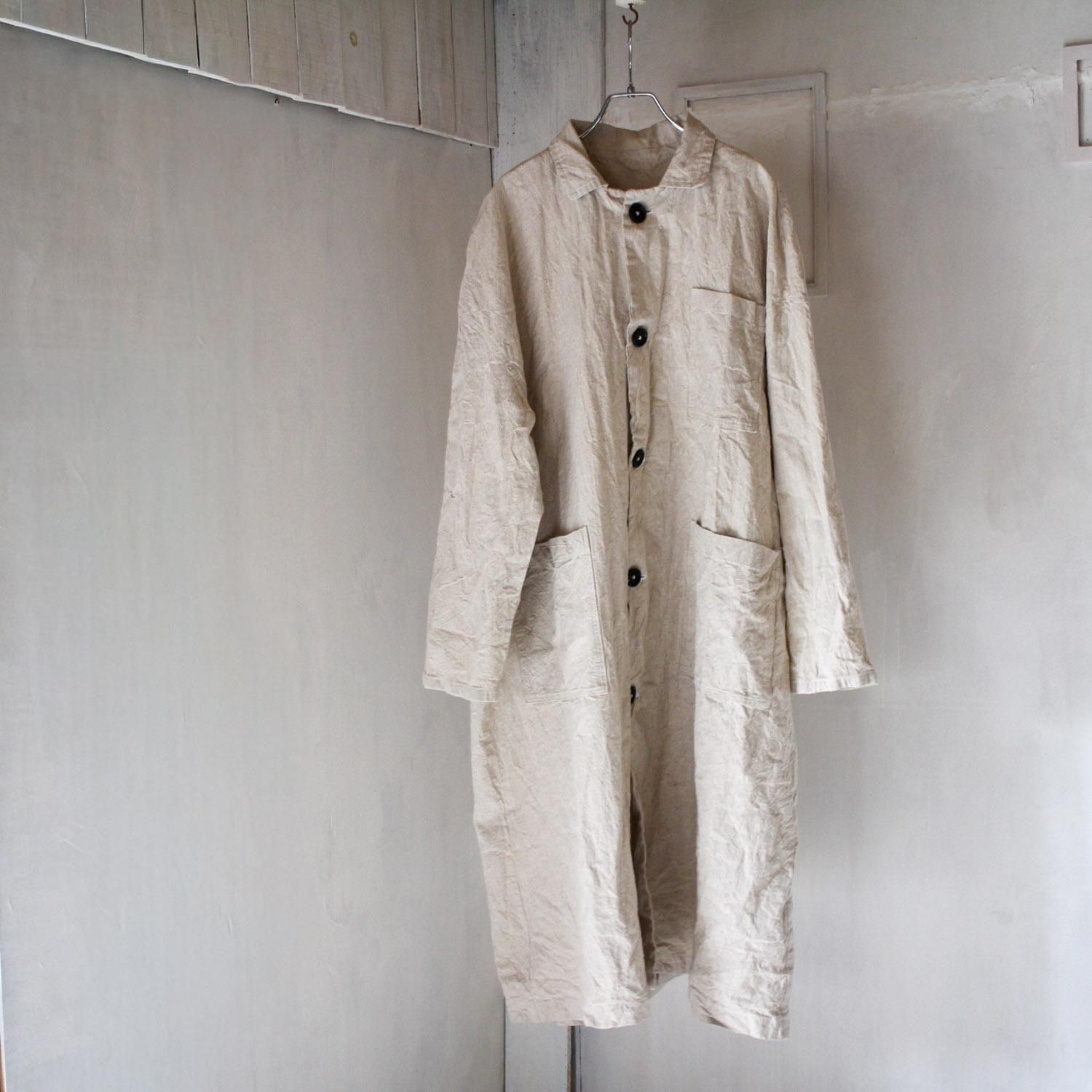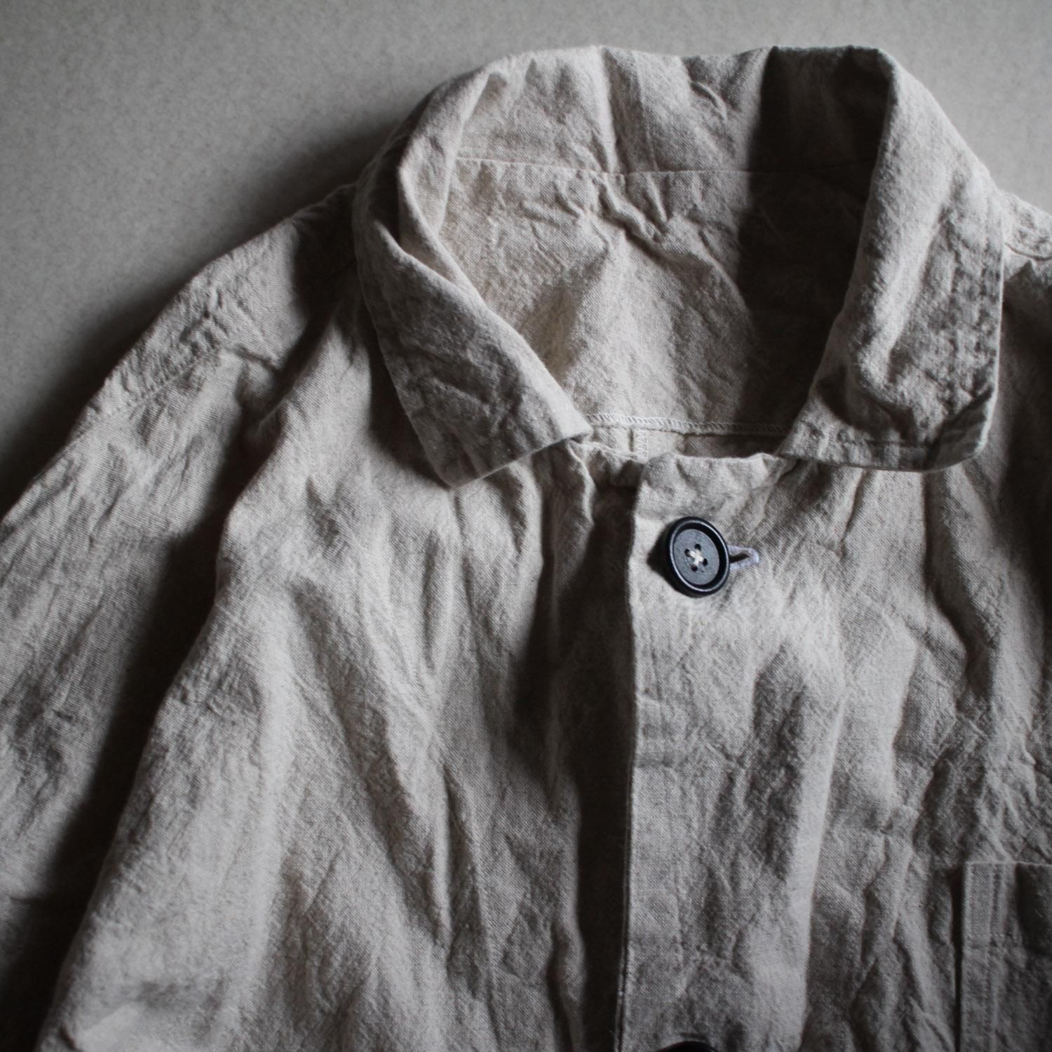 生成色の気配は、光の角度によって優しい陰影を生み、自然素材ならではの奥行きを感じさせます。落ち着いた色味のトップスやパンツとの相性が良く、季節を問わず楽しめる一着です。