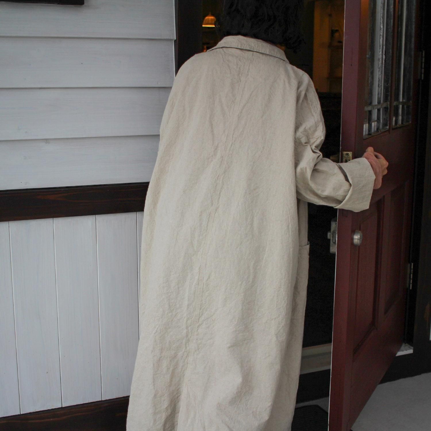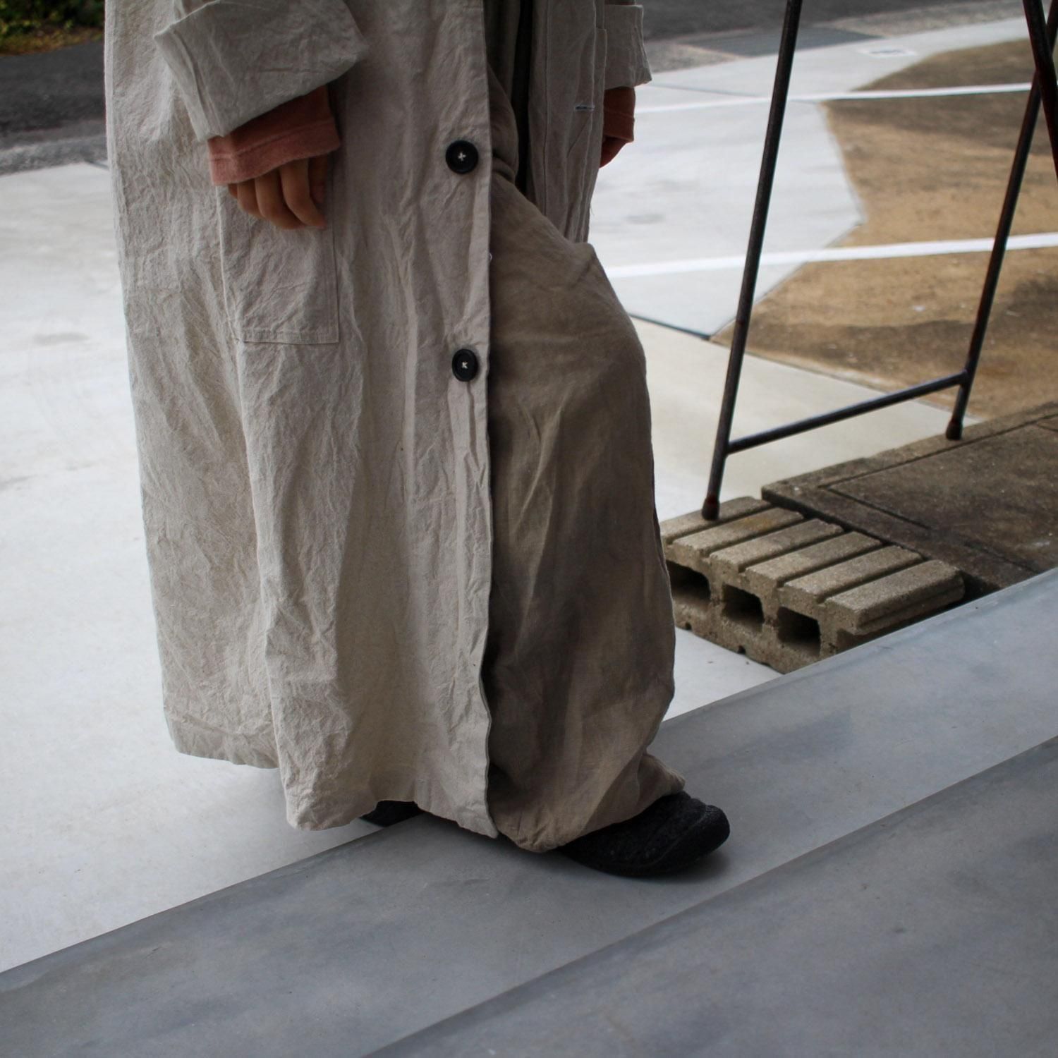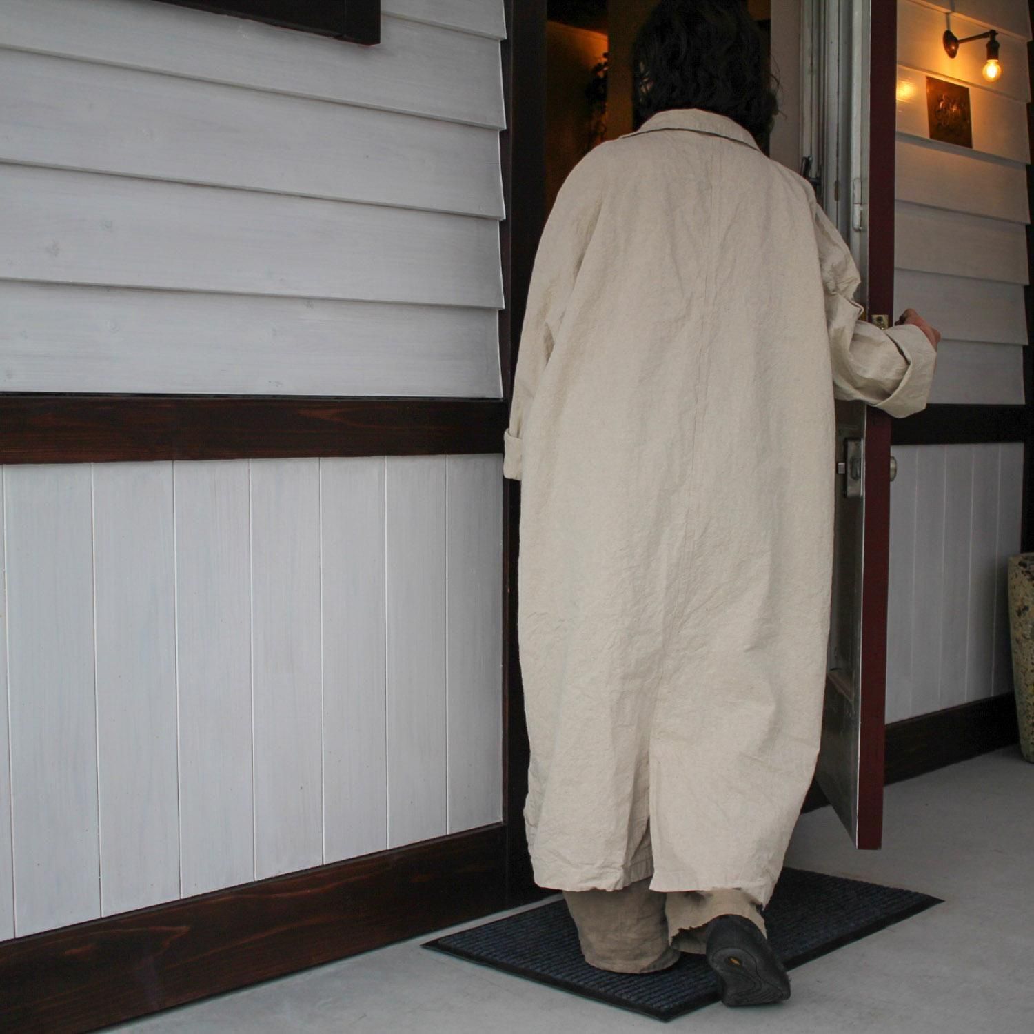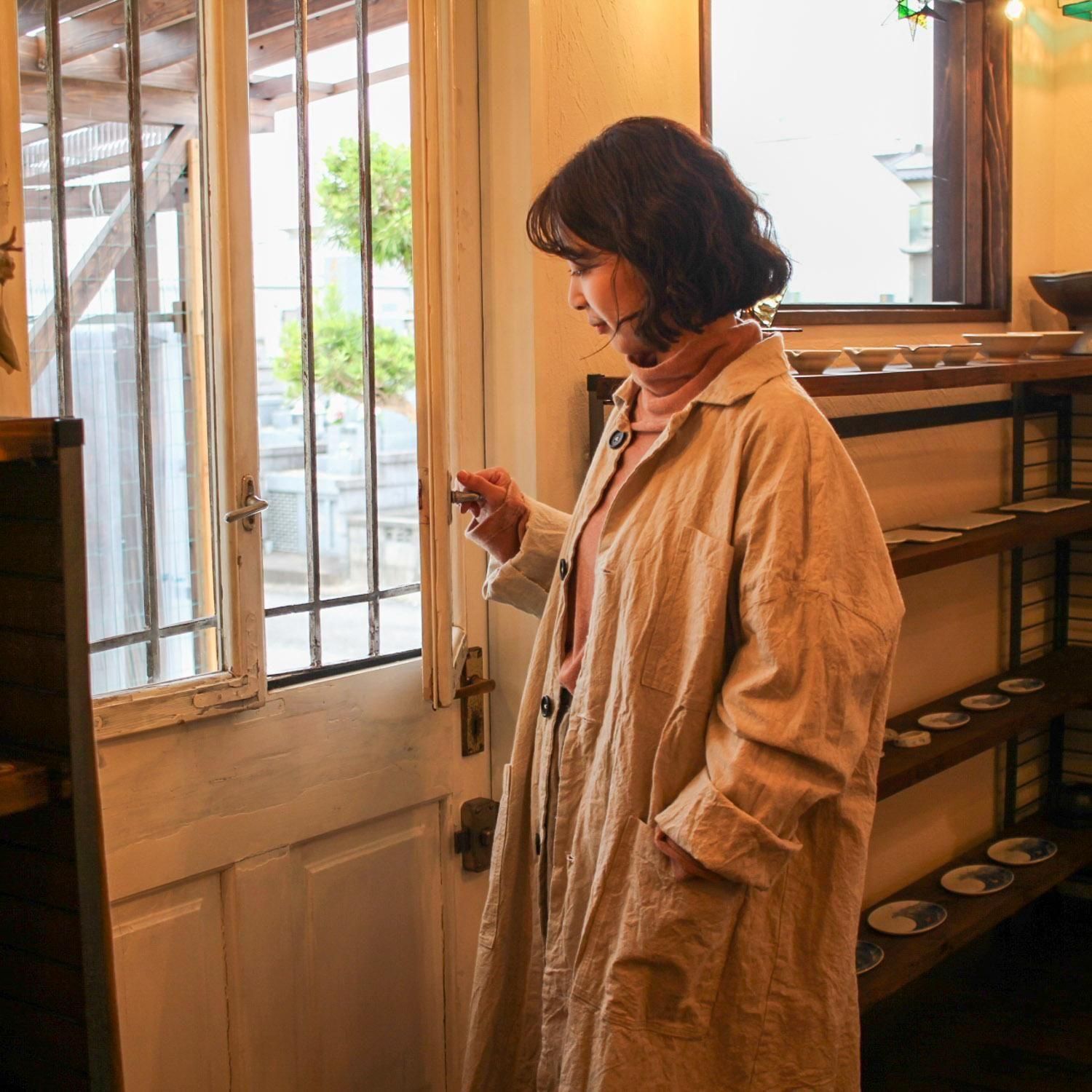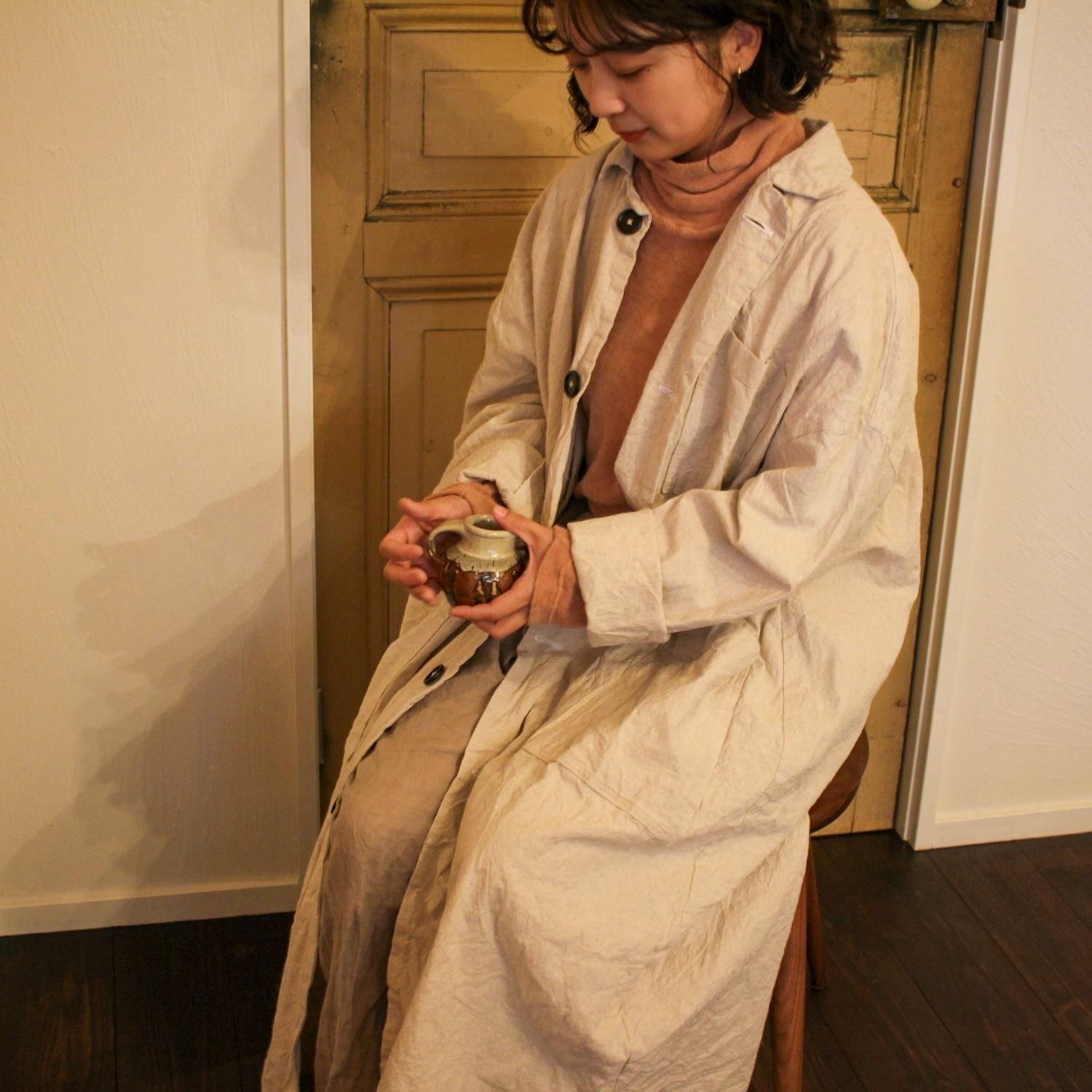 やわらかな空気をまといながら、深い安心感を添えるロングコート「kuon – canvas coat」。